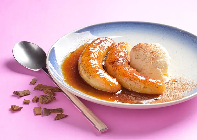 - Acrescente as bananas, deixe dourar de um lado e vire delicadamente para dourar o outro.