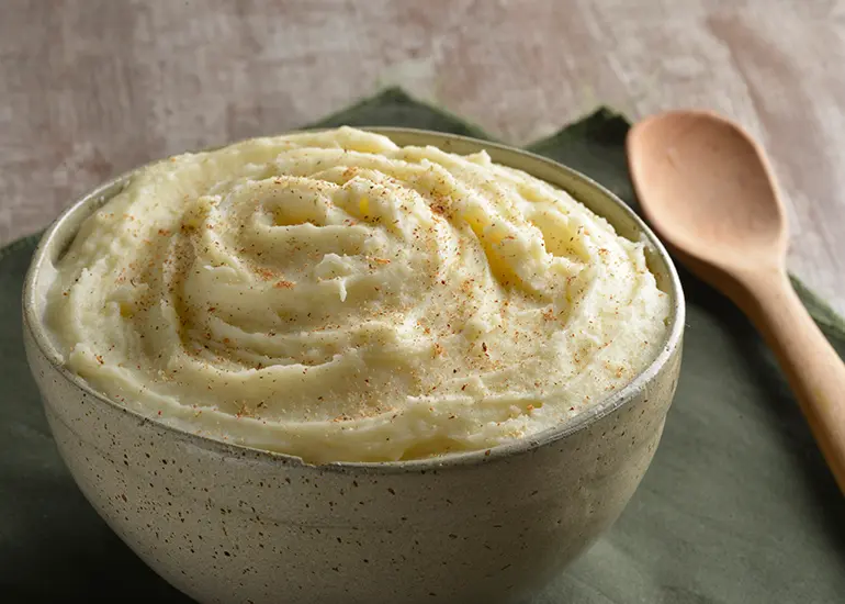 - Acrescente o sal e as batatas, mexendo sempre até obter uma mistura pastosa e lisa. Sirva quente.